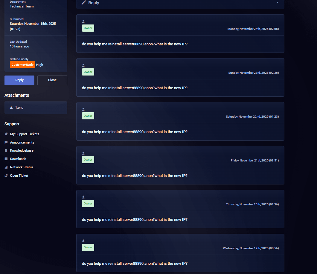 Hello, our team has replied to all tickets. Can you please check if you got a reply. If you have not please provide me the ticket-id in the dms we will solve it.I have been in contact with you since November 16th, but so far no one has responded to my questionView Ticket - AnonRDP