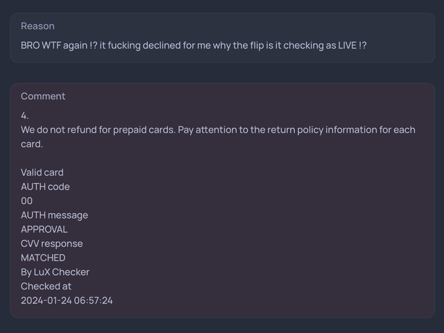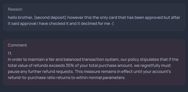 Next, you purchased a prepaid card and immediately attempted to request a refund for it, even though our rules clearly state in section 4: "We do not refund for prepaid cards. Pay attention to the return policy information for each card."