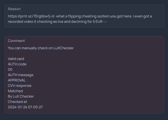 Then you tried once again to return the purchased credit card, which was valid according to the LuX checker, but your limit was still exceeding 35%. Obviously, your request for a refund was denied.