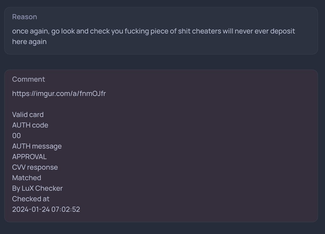 This represents the entirety of your activity. Consider whether it's reasonable to make assumptions about our shop or call us scammers, especially given that you've only purchased 4 cards. Moreover, expecting our team to ignore our established rules for someone with such a minimal purchase history is unwarranted.