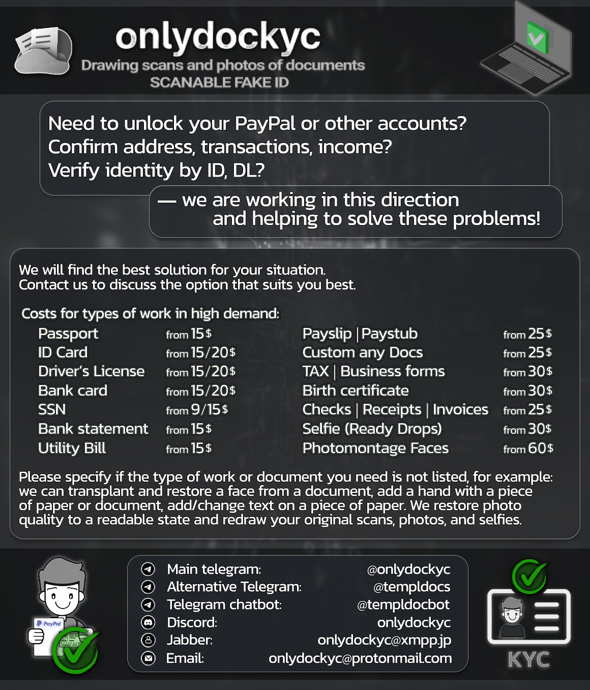 Main Telegram: @onlydockyc ( https://t.me/onlydockyc )