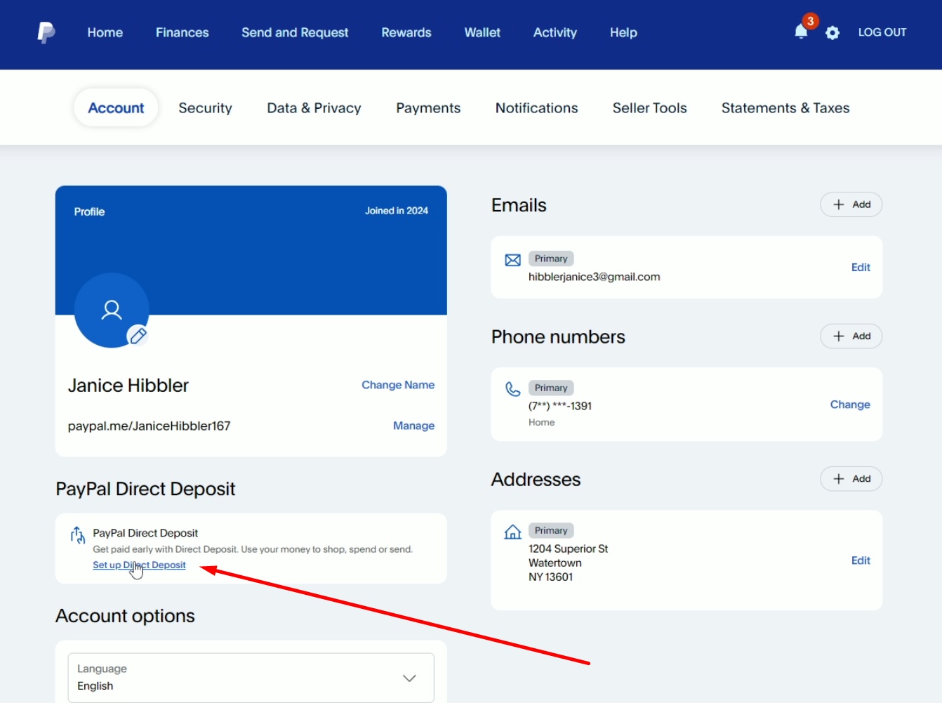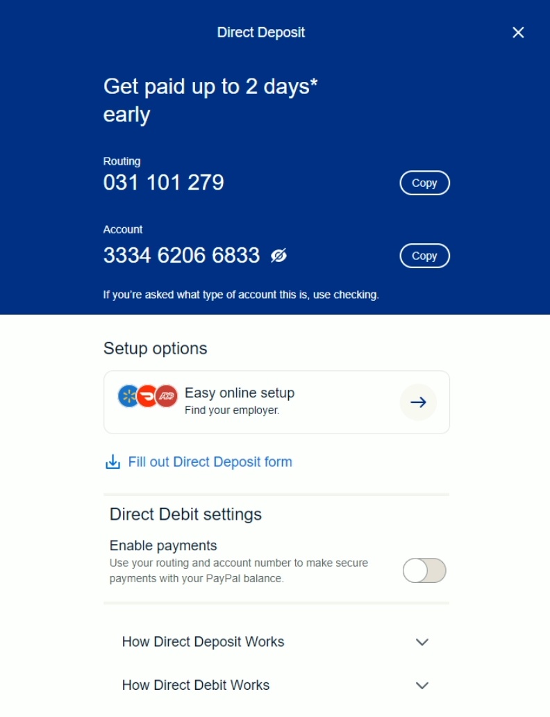 Select Set Up Direct Deposit
