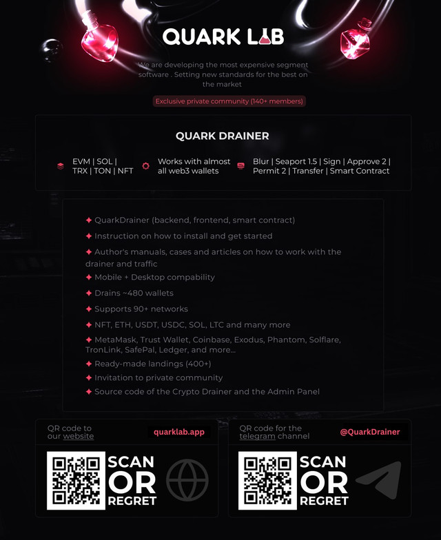 Supporting 440+ wallets across multiple blockchains (EVM, SOL, TRX, TON). Ideal for users in need of comprehensive and reliable drainer. Forget about blockaid, blowfish and security warnings.