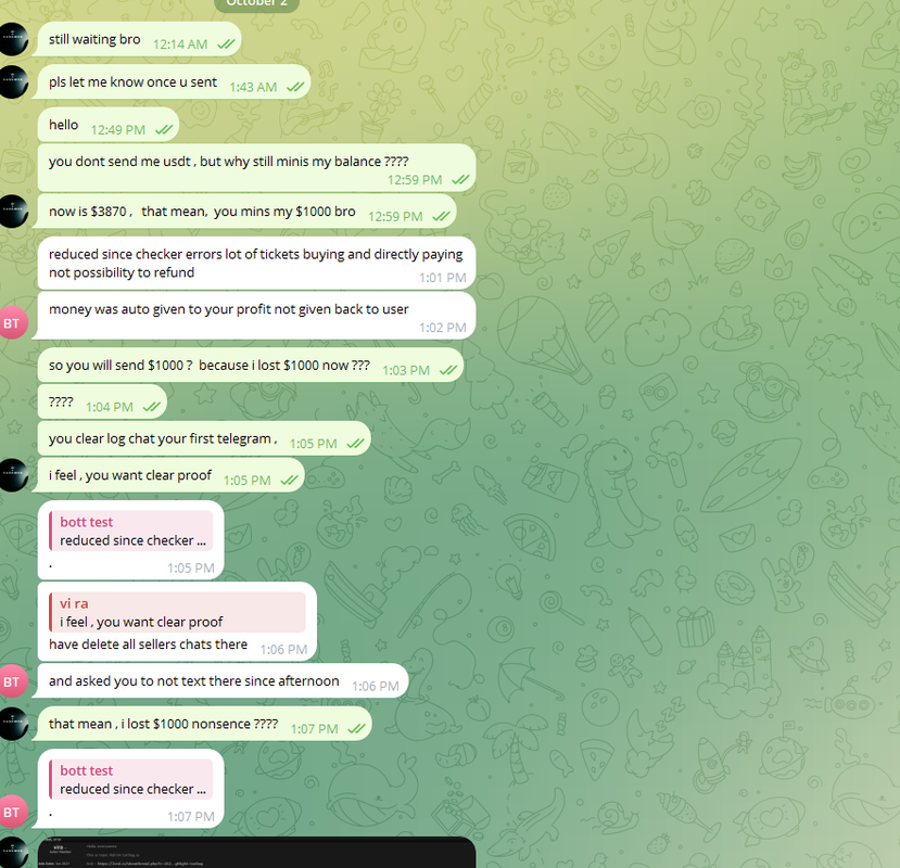 At first, everything seemed perfectly fine. We made a few small transactions — a few hundred dollars each. The admin was polite, responsive, and fair in every deal. Because of that, I trusted him.